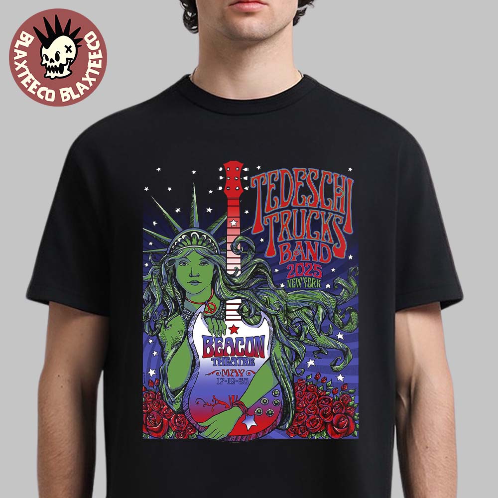 Tedeschi Trucks Band 2025 New York Poster At Beacon Theatre On May 17 19 20 2025 Statue Of Liberty Holding Guitar Artwork Unisex T-shirt