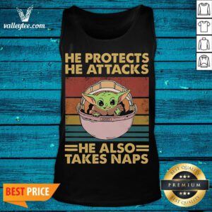 Top He Protects He Attacks He Also Takes Naps Baby Yoda Tank Top – Design By Valleytee.com