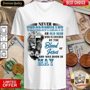 Vip Never Underestimate Old Man By The Blood Jesus In May V-neck