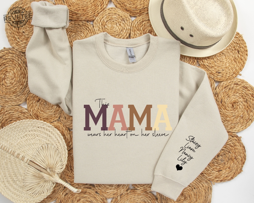 Custom This Mama Wears Her Heart On Her Sleeve Sweatshirt