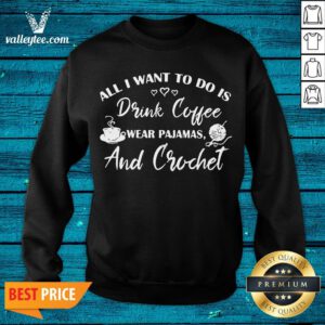 Cute All I Want To Do Is Drink Coffee Wear Pajamas And Crochet Sweatshirt – Design By Valleytee.com