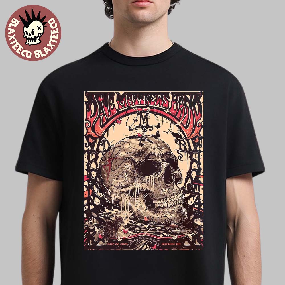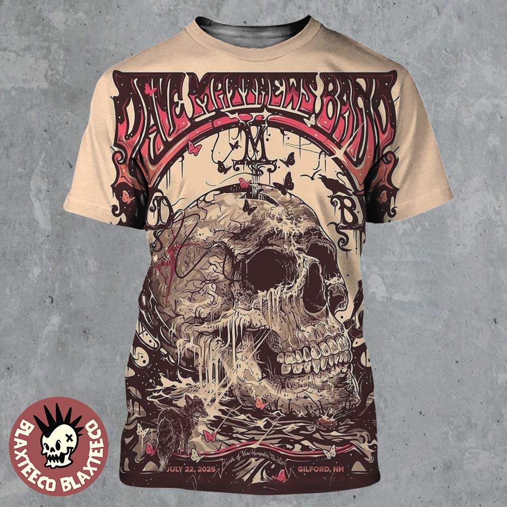 Dave Matthews Band Gilford New Hampshire 2025 Event Poster At Bank Of New Hampshire Pavilion On July 22 2025 Skull Art All Over Print Shirt