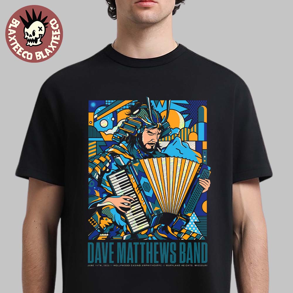 Dave Matthews Band Maryland Heights Missouri 2025 Gig Poster At Hollywood Casino Amphitheatre On June 14 2025 Samurai Cop Inspired Art Blue Version T-shirt