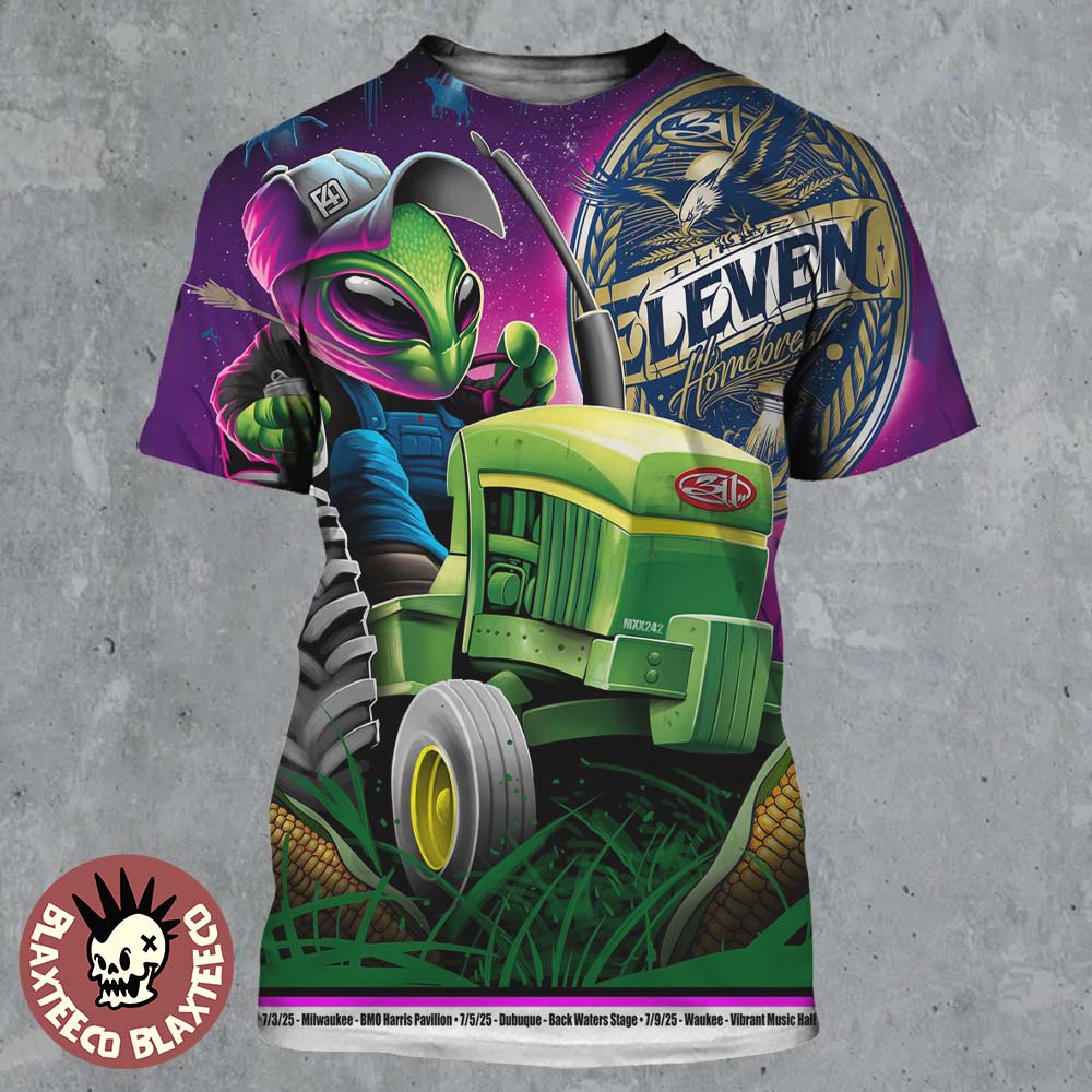 311 Band Homebrew Milwaukee And Dubuque 2025 Run Shows Poster At Bmo Harris Pavilion On July 3 Back Waters Stage On July 5 And Vibrant Music Hall On July 9 2025 Farmer Alien Art All Over Print Shirt