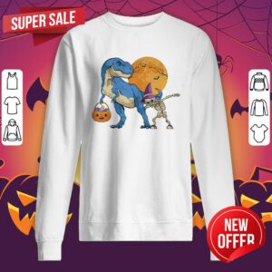 Dinosaur T Rex With Dabbing Skeleton Pumpkin Candy Halloween Sweatshirt