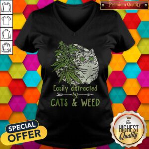 Easily Distrcted By Cats And Weed V-neck