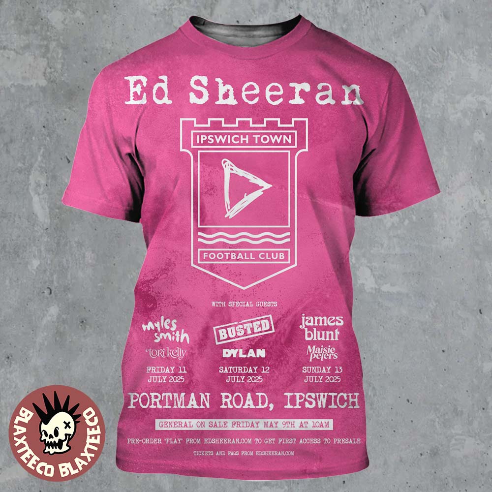 Ed Sheeran X Ipswich Town Fc Portman Road Shows 2025 On July 11 12 And 13 2025 All Over Print Shirt