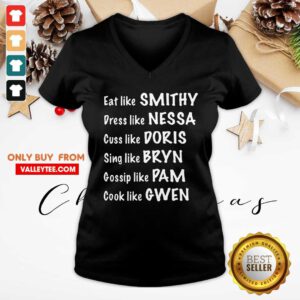 Eat Like Smithy Dress Like Nessa Cuss Like Doris Sing Like Bryn Gossip Like Pam Cook Like Gwen V-neck – Design By Valleytee.com