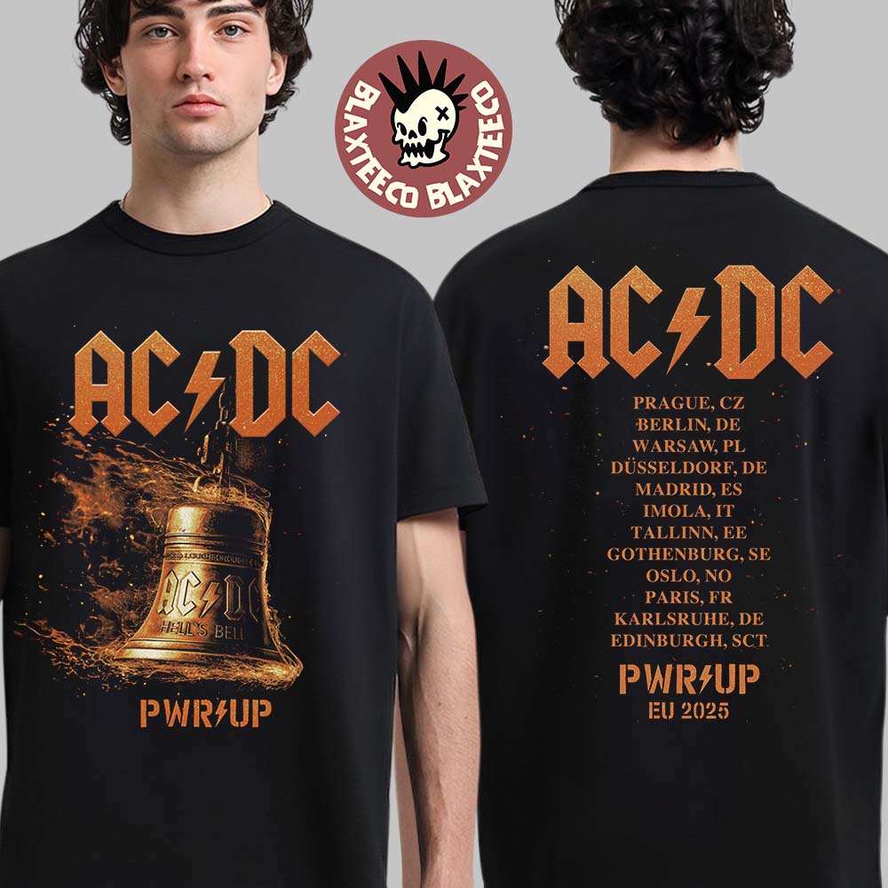 Acdc Pwr Up Europe 2025 Tour Merch Hells Bells Lightning With Tour Dates T-shirt