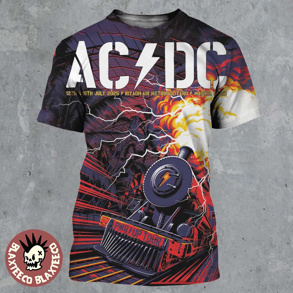 Acdc Pwr Up Madrid Spain 2025 Venue Poster At Riyadh Air Metropolitano On July 12 And 16 2025 The Train Art All Over Print Shirt