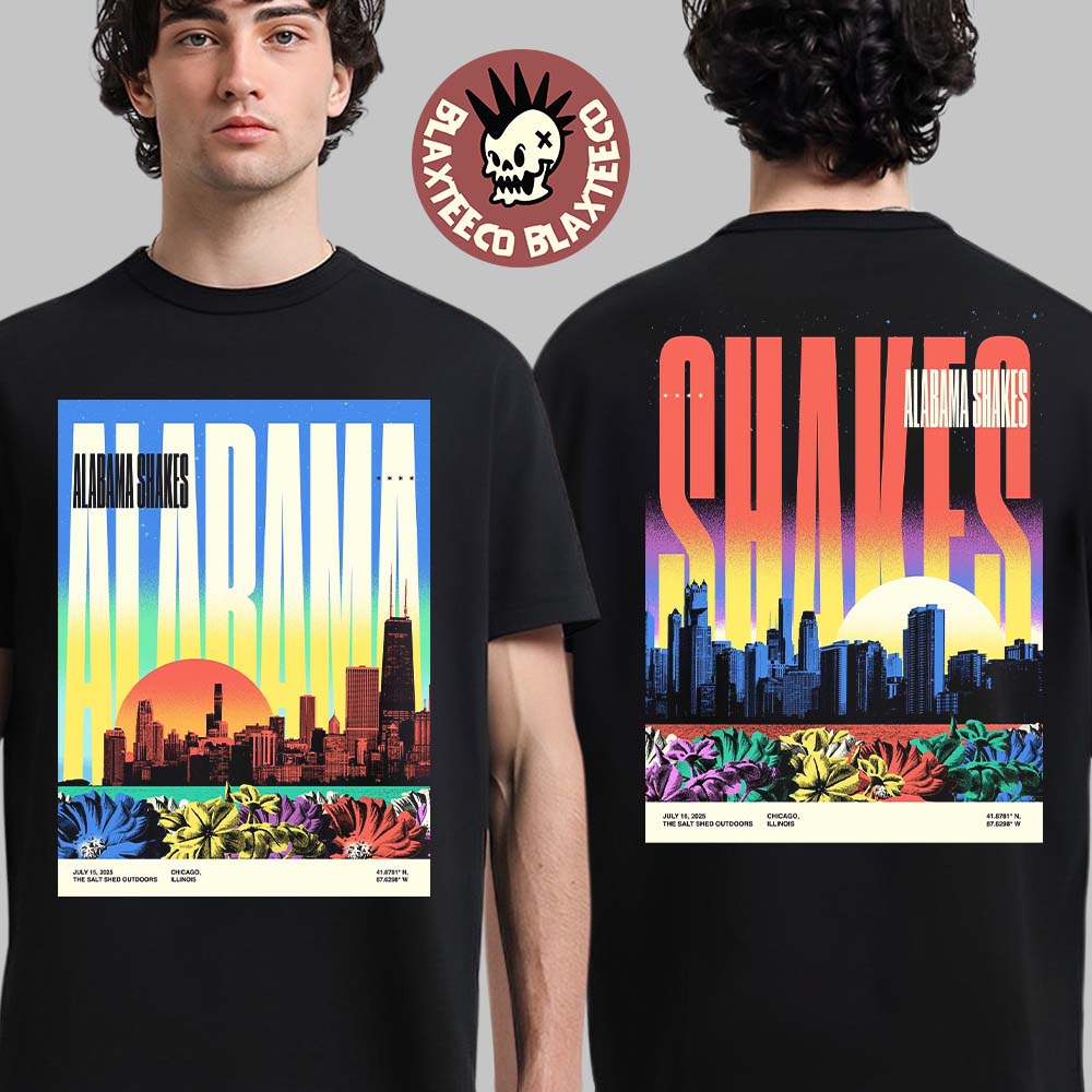 Alabama Shakes Chicago Illinois 2025 Shows Diptych Night 1 And 2 Combined Poster At The Salt Shed Outdoors On July 15 And 16 2025 Two Sided T-shirt