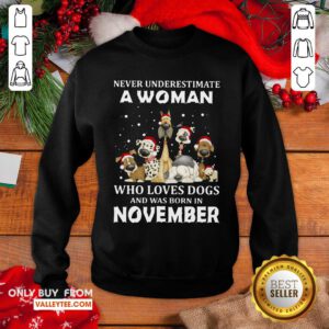 Never Underestimate A Woman Who Loves Dogs And Was Born In November Sweatshirt – Design By Valleytee.com