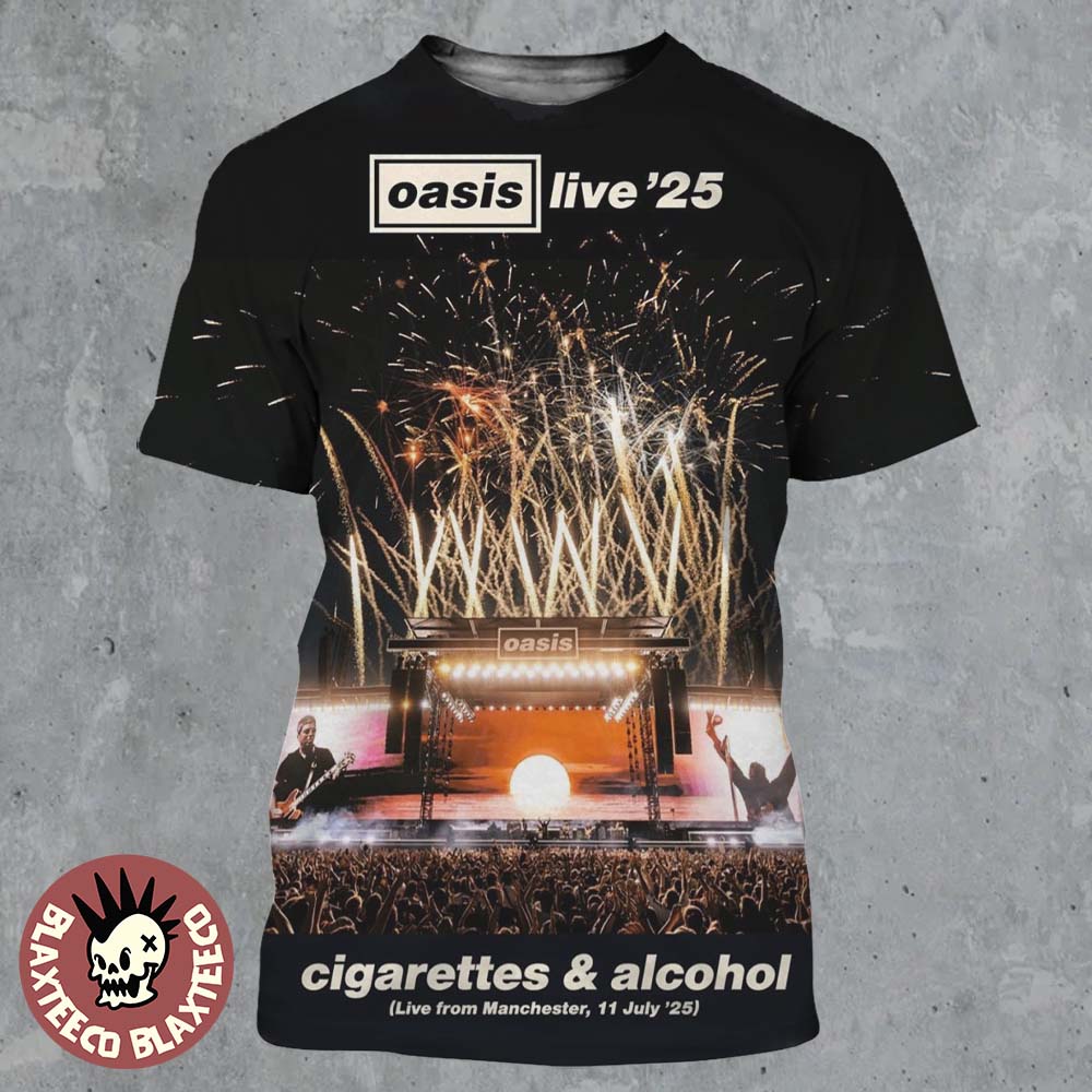 Oasis Live 25 Cigarettes And Alcohol Live From Manchester On July 11 2025 All Over Print Shirt