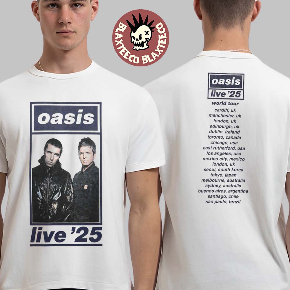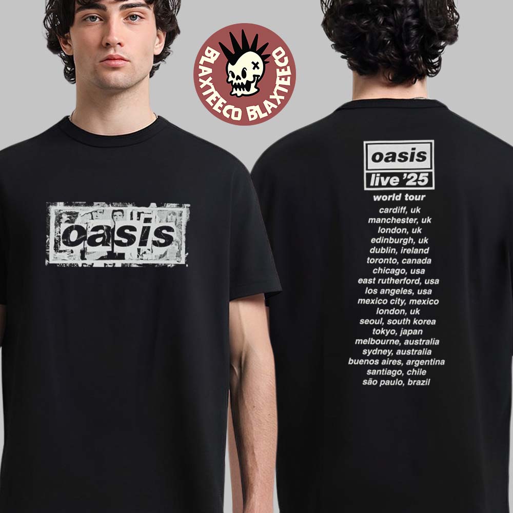 Oasis Live 25 World Tour Box Logo Uk Design With Tour Dates Two Sided T-shirt
