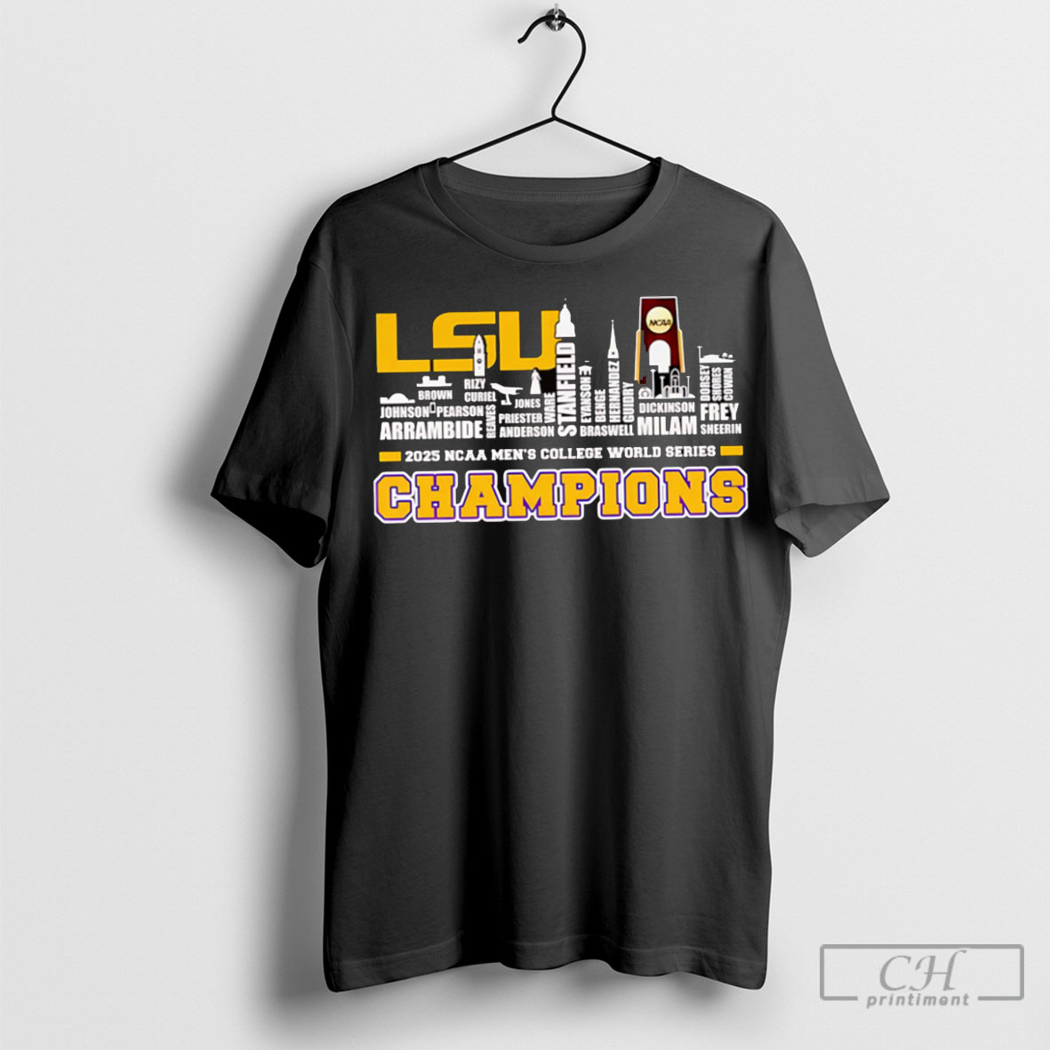 Official Skyline Name Lsu Tigers 2025 Ncaa Mens College World Series Champions Shirt