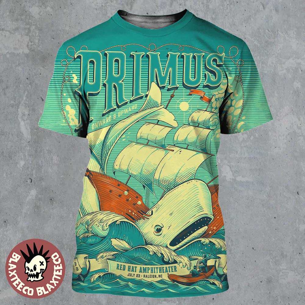 Primus Onward And Upward 2025 Tour In Raleigh North Carolina At Red Hat Amphitheater On July 23 2025 Great Whale Art All Over Print Shirt