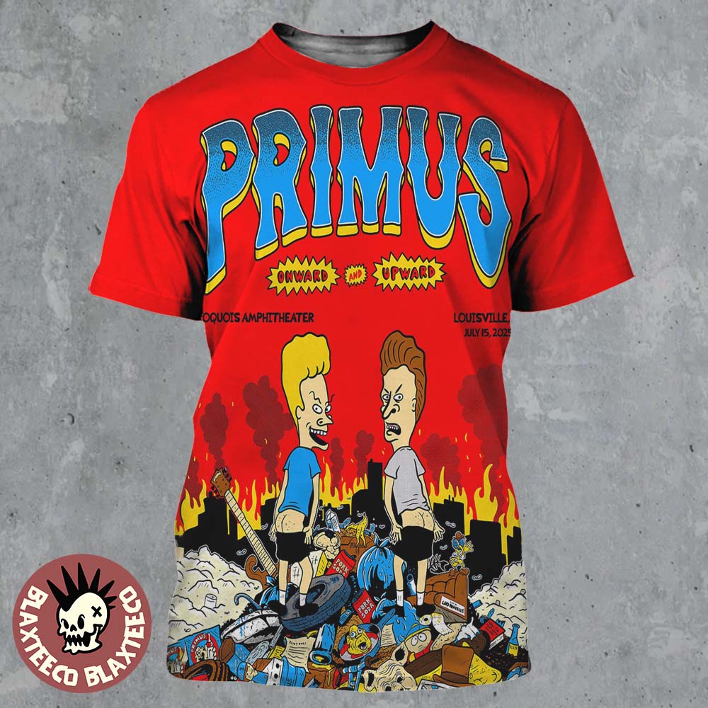 Primus Onward And Upward Louisville Kentucky 2025 Concert Poster At Iroquois Amphitheater On July 15 2025 Beavis And Butt-head All Over Print Shirt