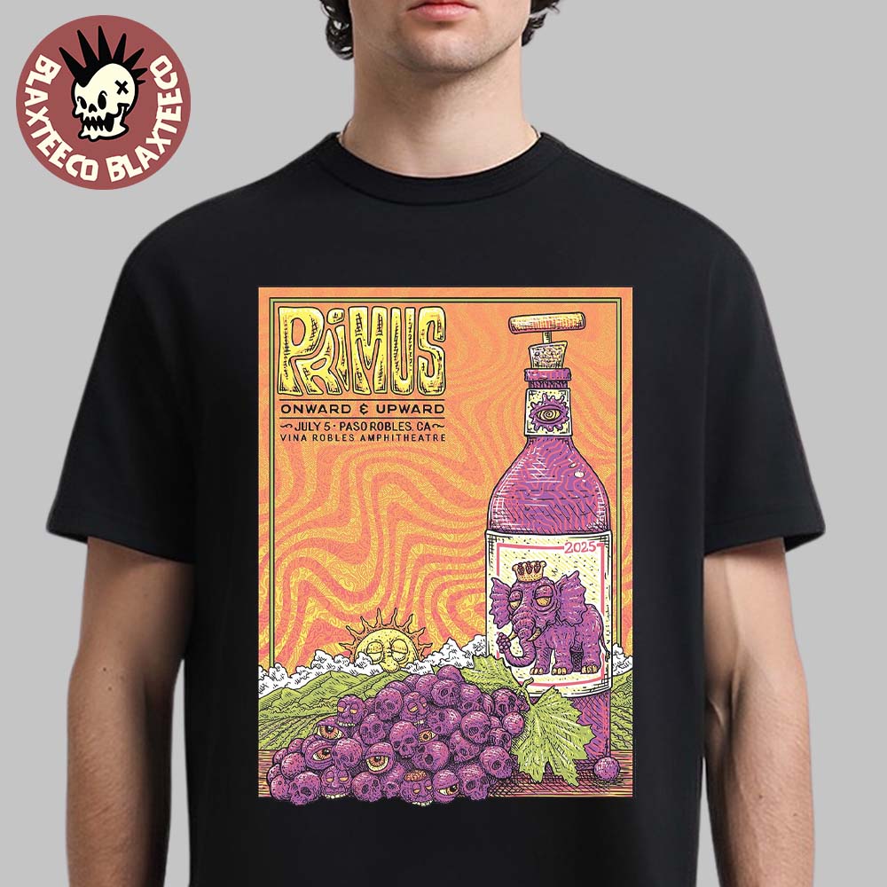 Primus Onward And Upward Paso Robles California 2025 Gig Poster At Vina Robles Amphitheatre On July 5 2025 Unisex T-shirt